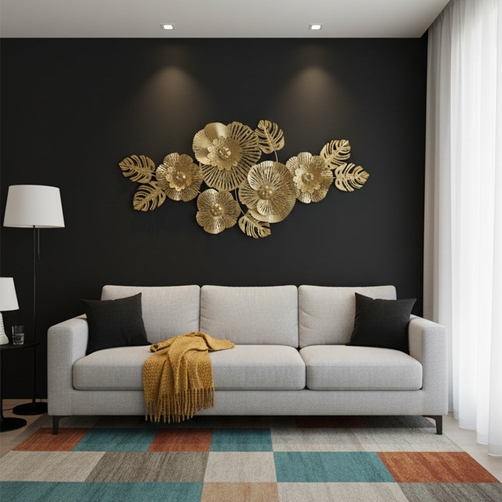 The image features gold flowers set against a white wall, creating a striking contrast. The arrangement emphasizes the elegance of...