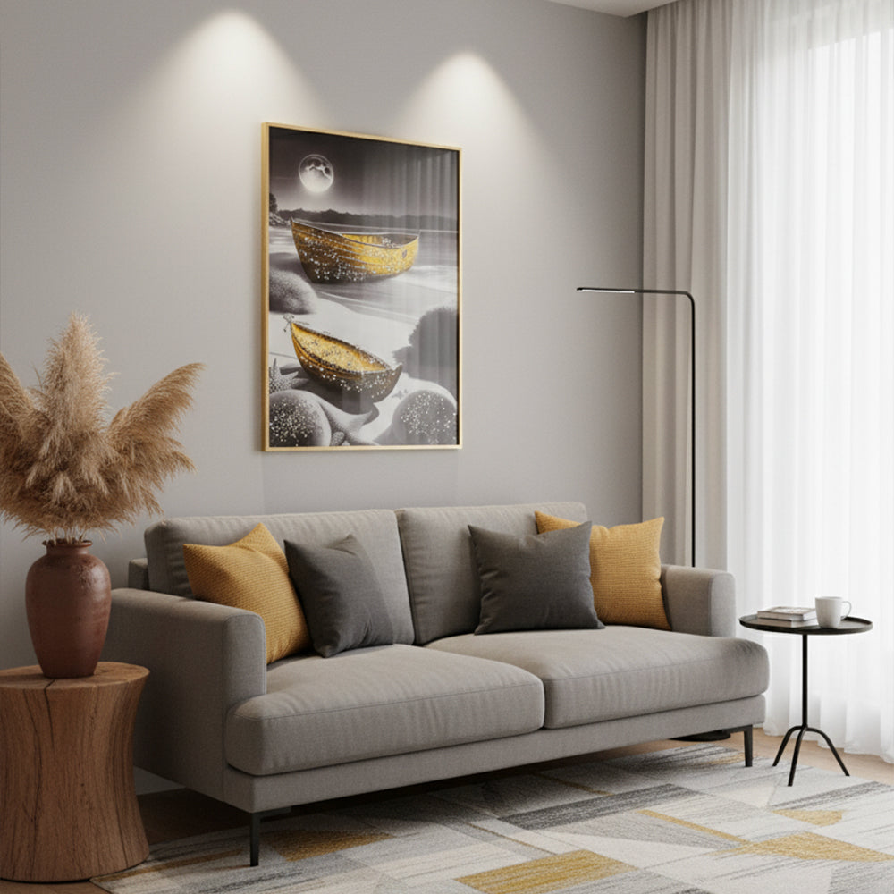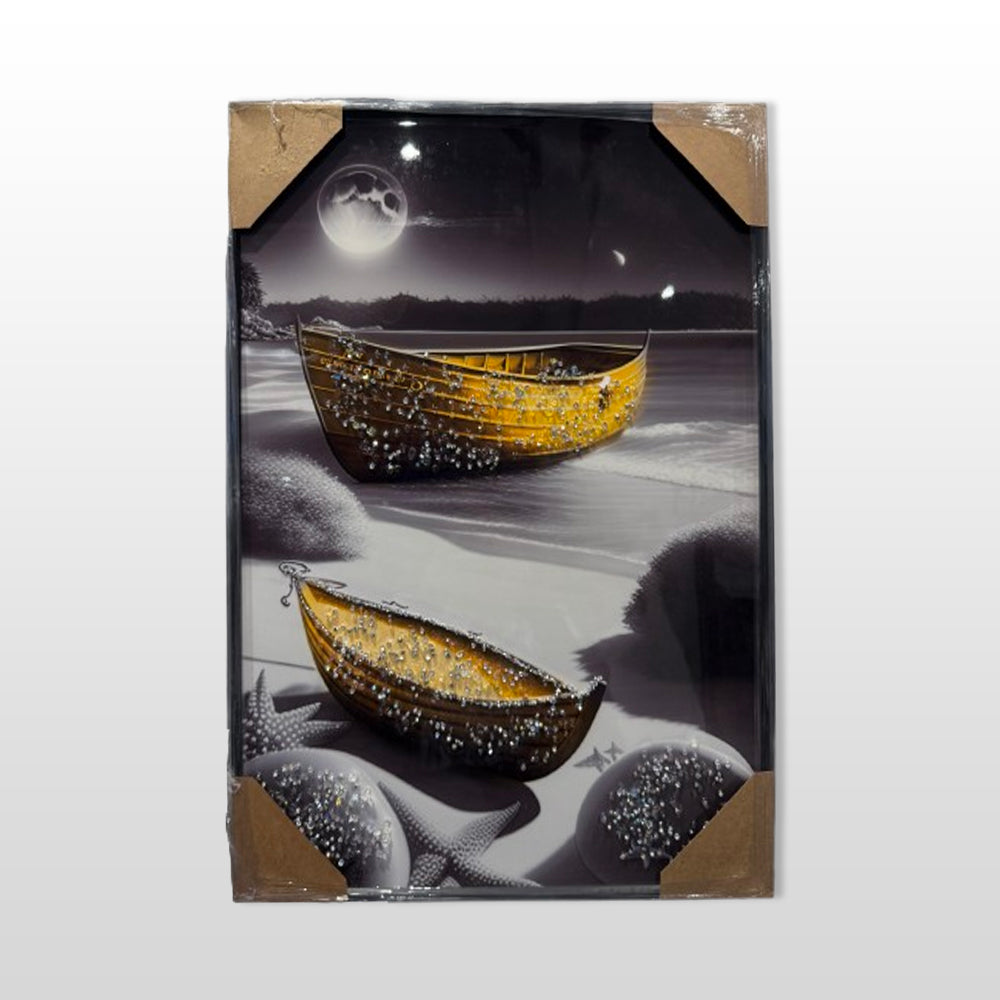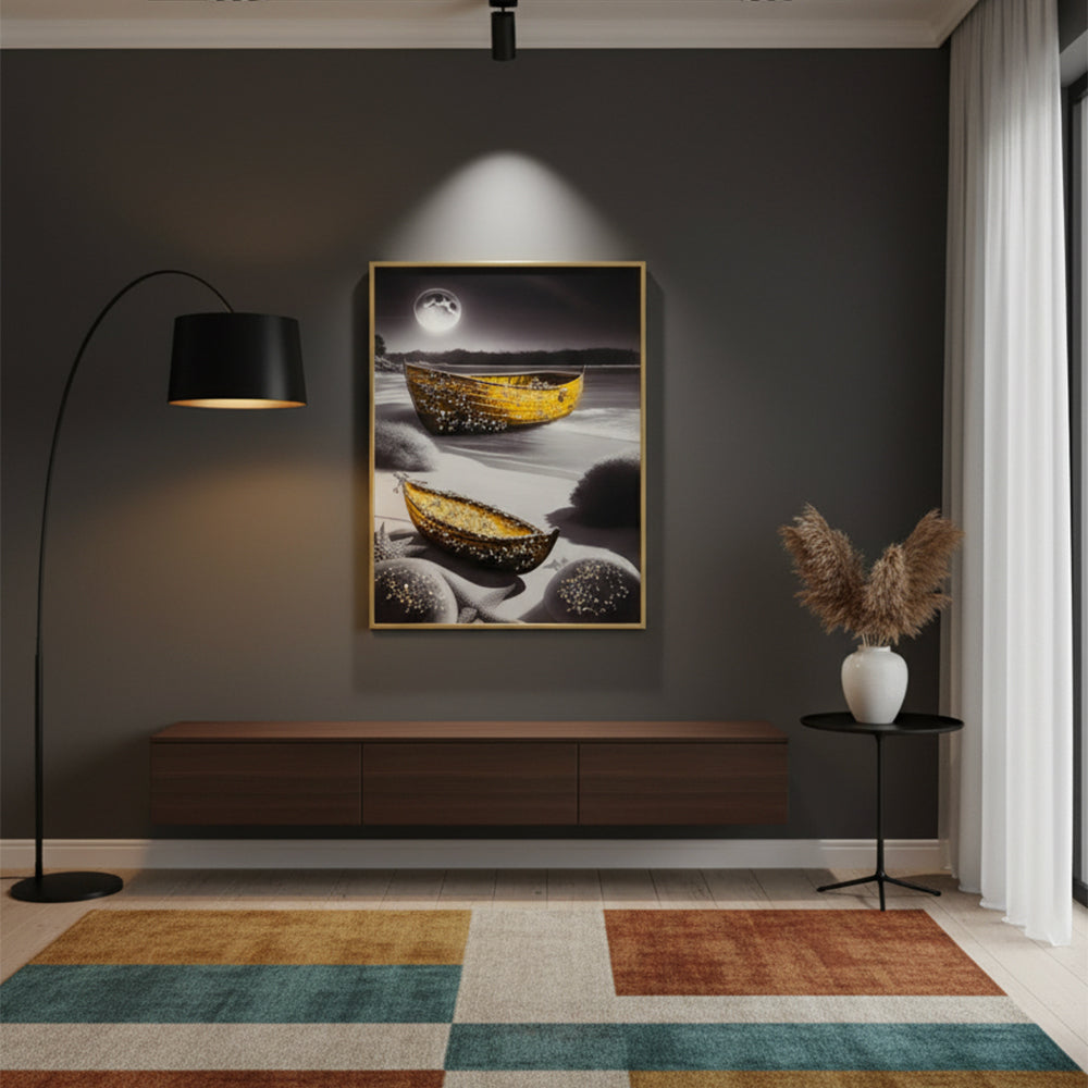 A serene artwork portraying calm waters under the gentle glow of moonlight, evoking tranquility, reflection, and the quiet beauty of...